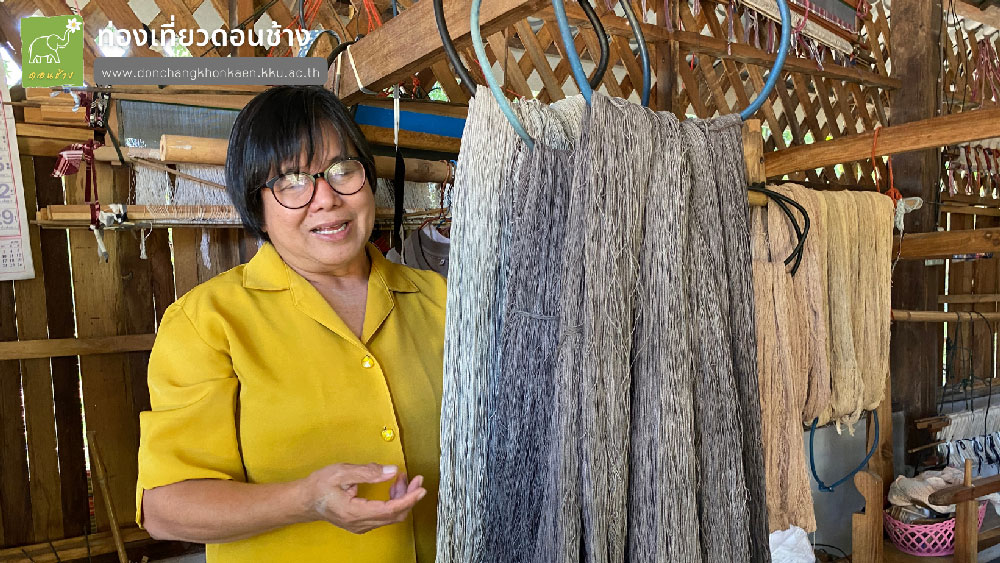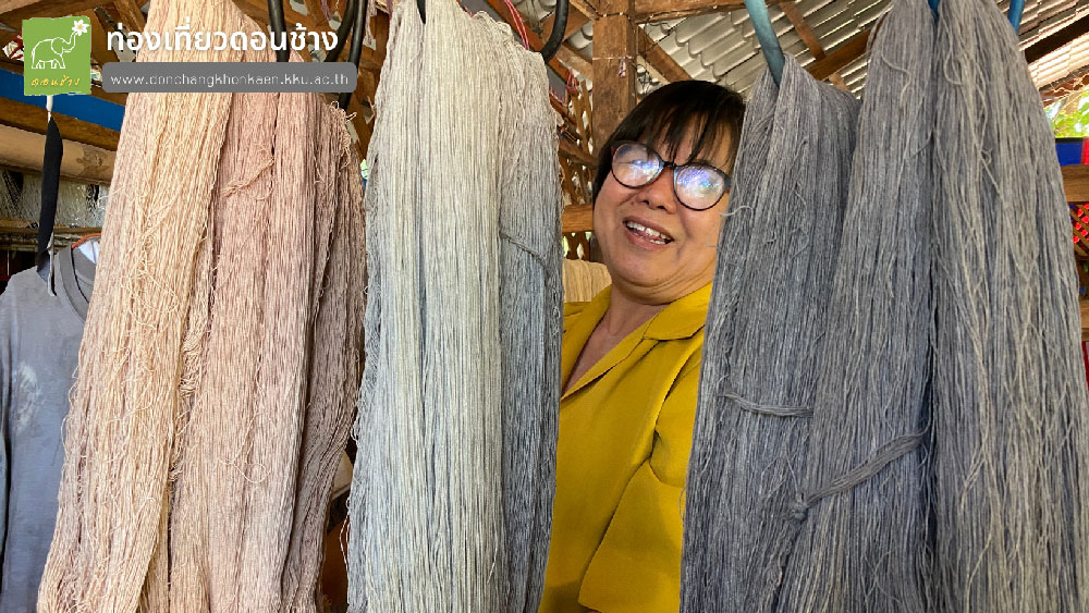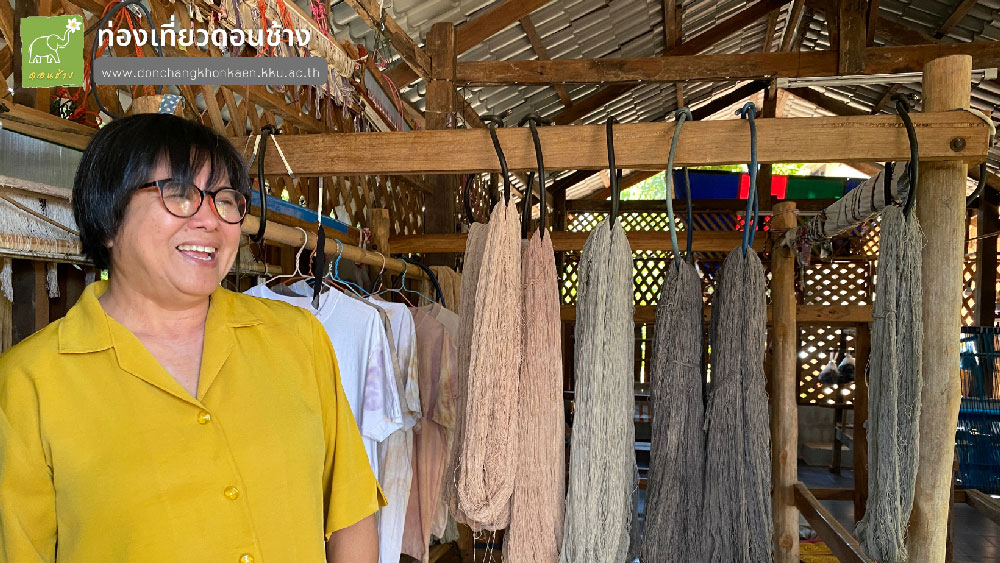 แม่นิพาได้พาชมฝ้ายที่ผ่านการหมักและย้อมสีธรรมชาติ โดยใช้โคลนจากแก่งน้ำต้อน ซึ่งมีลักษณะพิเศษแตกต่างจากที่อื่นๆ หลังจากผ่านการลองผิดลองถูกมาระยะหนึ่ง จึงได้สูตรพิเศษของการทำโคลนหมัก ที่ใช้ โคลนรากบัว จากแก่งน้ำต้อน แหล่งน้ำธรรมชาติขนาดใหญ่ของชุมชน