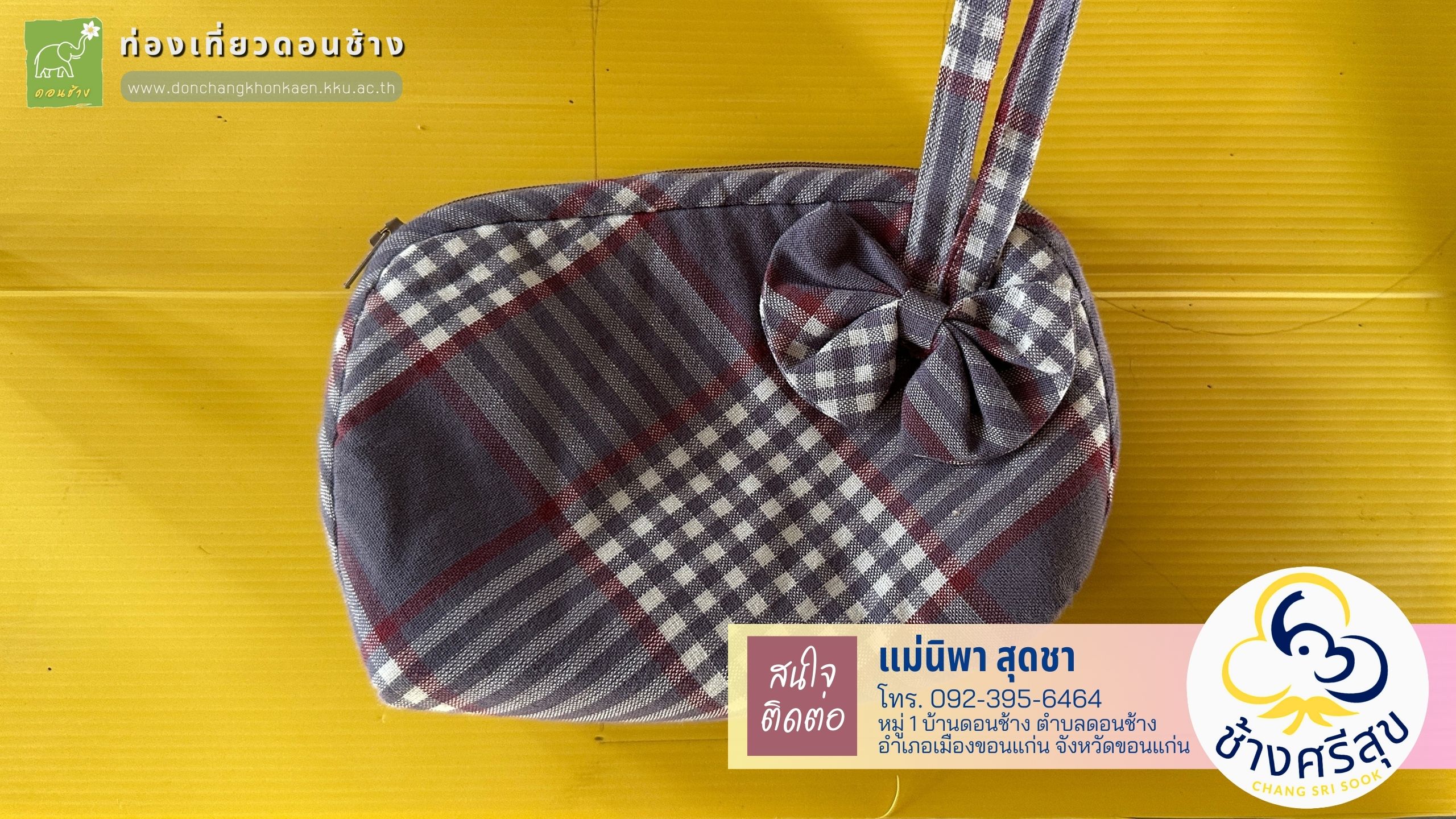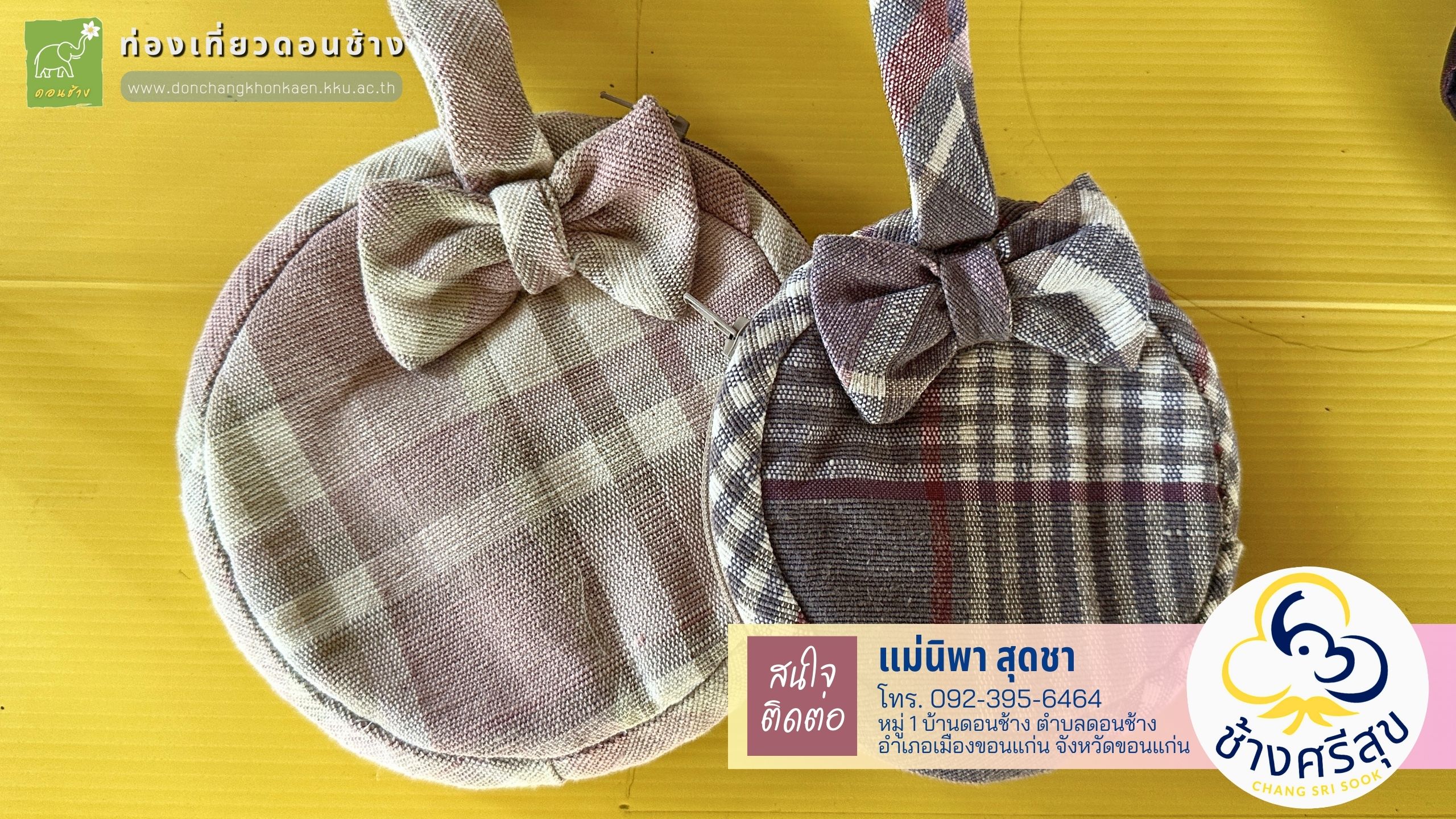กระเป๋าผ้าฝ้ายหลากสไตล์และผ้าฝ้ายทอมือ ของกลุ่มทอผ้าฝ้าย หมู่ ๑ บ้านดอนช้าง ตำบลดอนช้าง อำเภอเมืองขอนแก่น