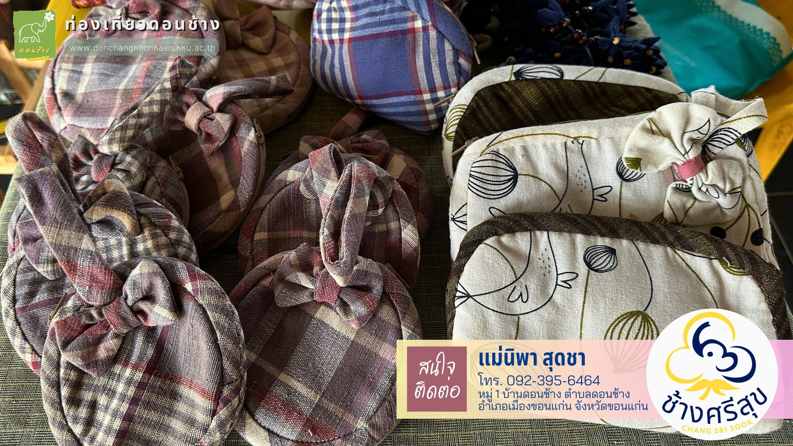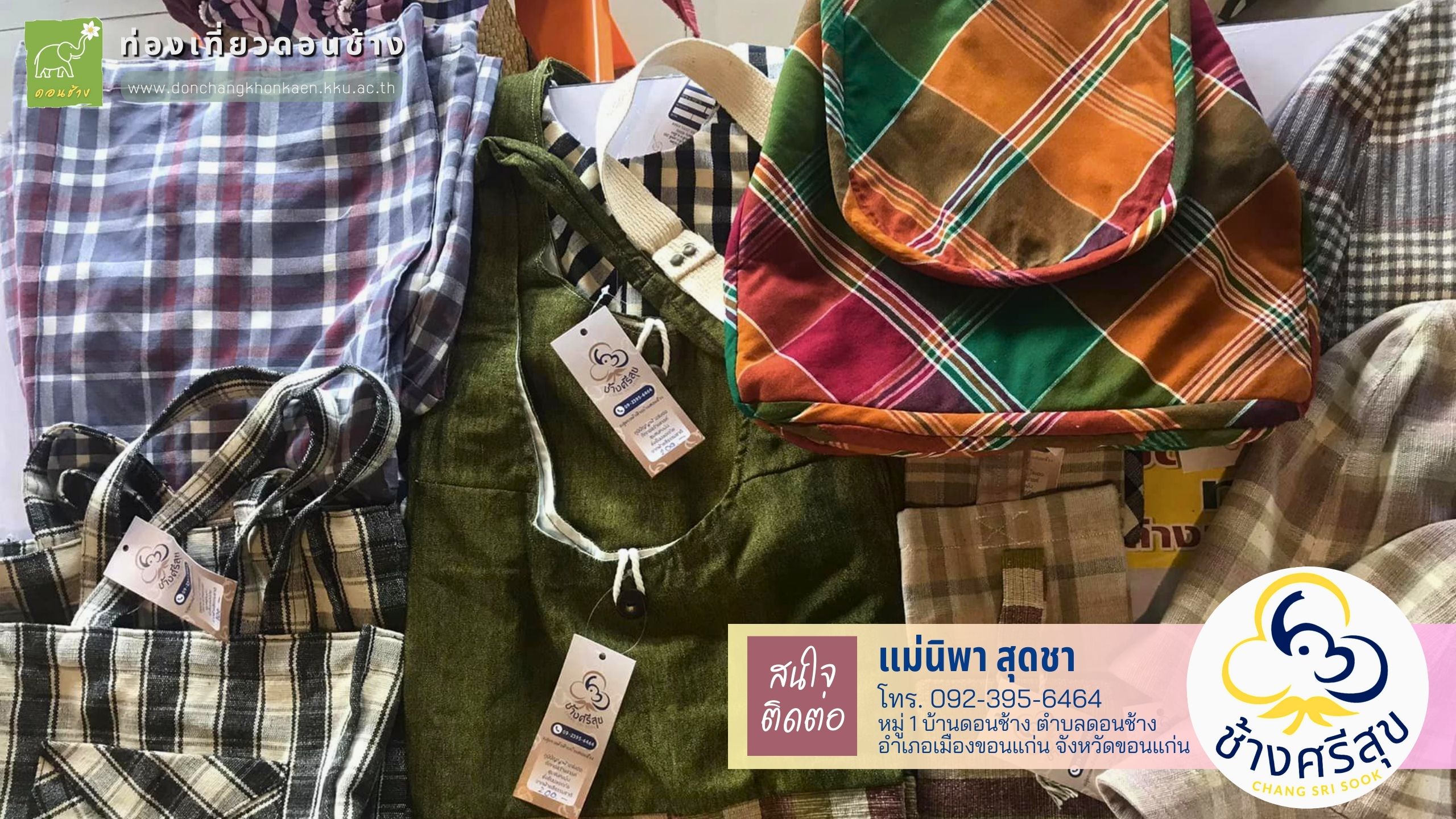 จากนั้นจึงได้นำไปต่อยอด เป็นผลิตภัณฑ์ที่มีความหลากหลายมากขึ้น และรวมกลุ่มกันจำหน่ายภายใต้แบรนด์ “ช้างศรีสุข” ซึ่งเป็นแบรนด์หลักของกลุ่มทอผ้าฝ้ายบ้านดอนช้าง และประชาสัมพันธ์ผ่านเฟสบุ๊คแฟนเพจ ช้างศรีสุข Chang Sri Sook